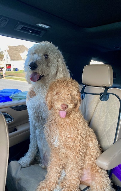 Our family heard of a friend with golden doodle puppies that were ready for homes. They thought this may be a good idea to help us cope and give Beau a buddy. We took Beau to meet all of the puppies. I told myself if he didn't seem to be interested or if the puppies were scared of him, we wouldn't do it. Well, he picked himself out the perfect little brother!